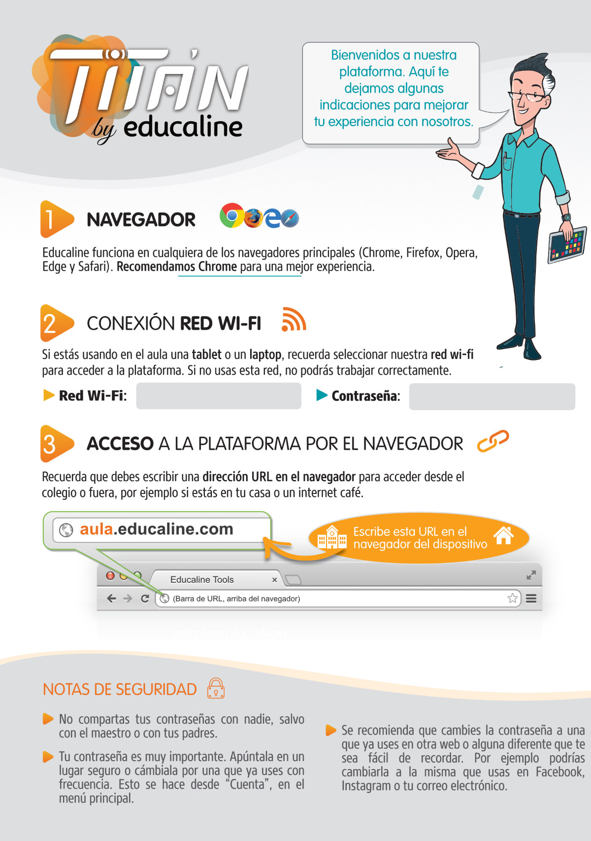Si olvidó la contraseña de acceso a la plataforma, debe enviarnos un correo a soporte@educaline.com, especificando lo siguiente: